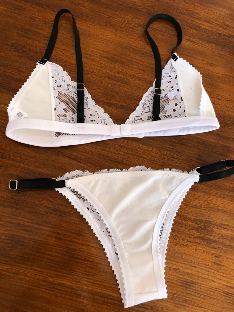 SET DE LENCERIA COMBINADO EN ALGODÓN Y ENCAJE