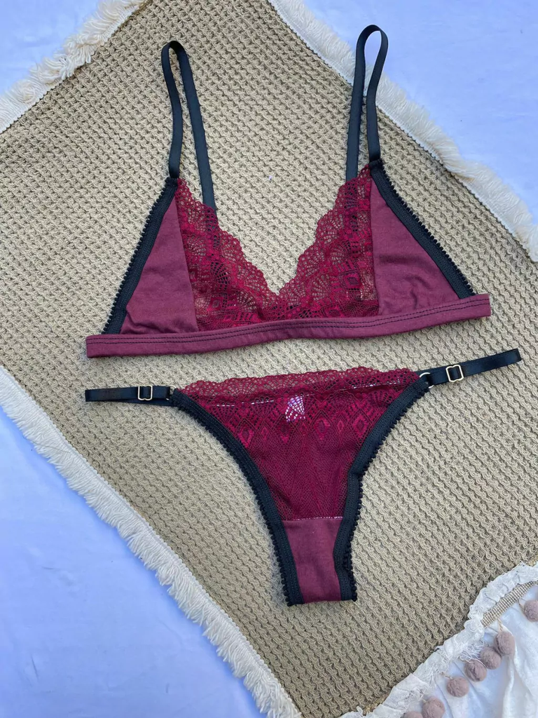 SET DE LENCERIA COMBINADO EN ALGODÓN Y ENCAJE