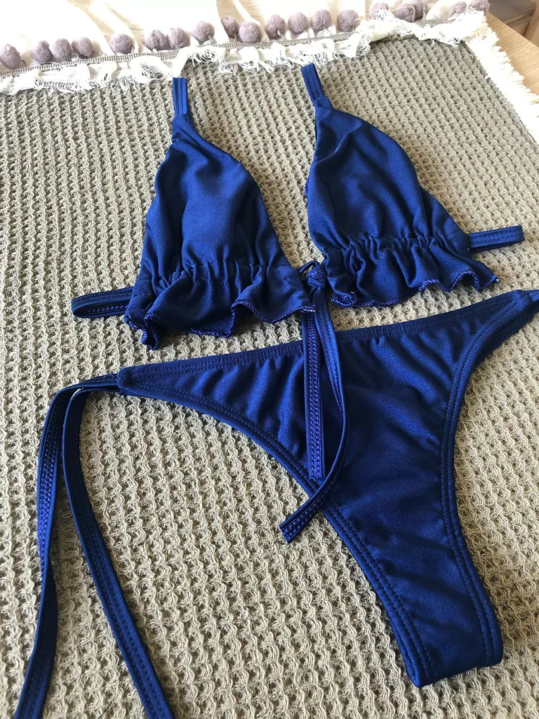 Triángulo forrado movible con detalle de volados en zona del bajo busto
