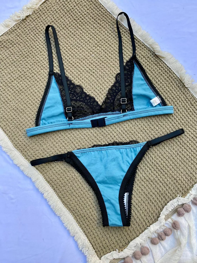 SET DE LENCERIA COMBINADO EN ALGODÓN Y ENCAJE
