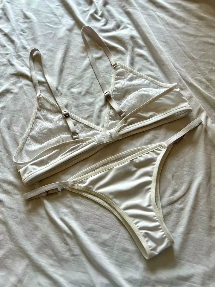 SET DE LENCERIA EN MICROFIBRA Y ENCAJE