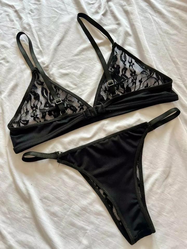 SET DE LENCERIA EN MICROFIBRA Y ENCAJE